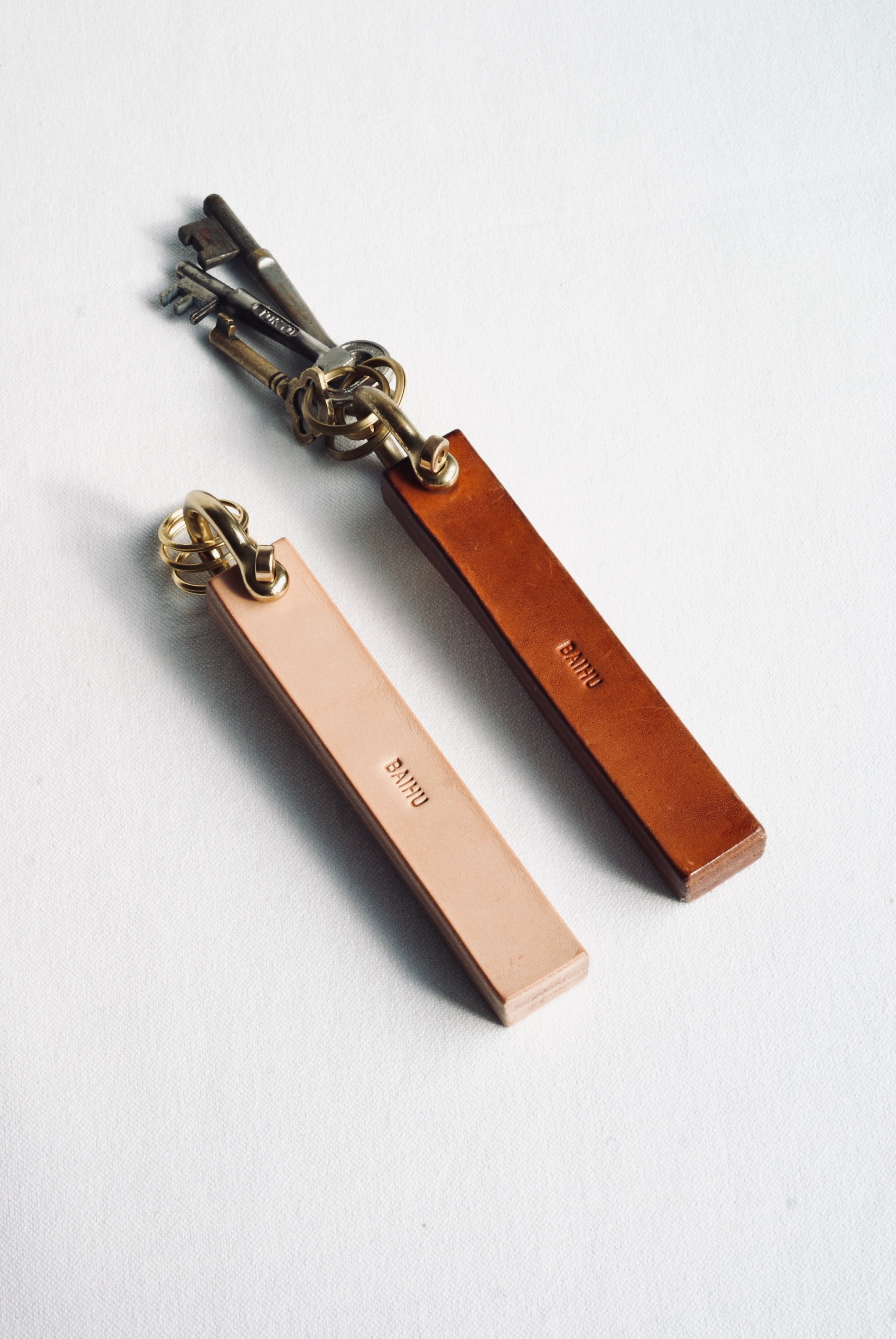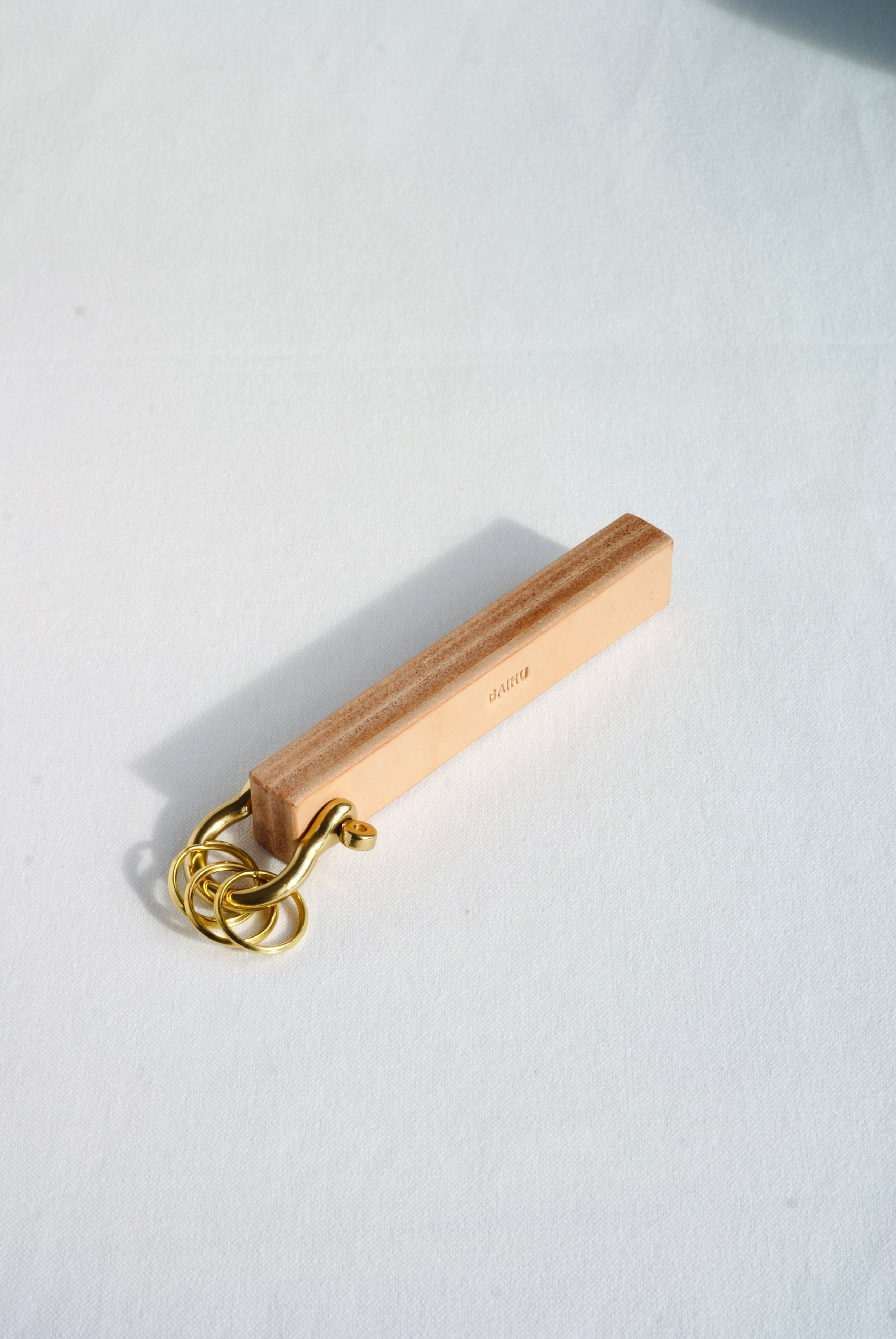 真鍮製のシャックルとリングを採用したホテルキー型のキーリングです。