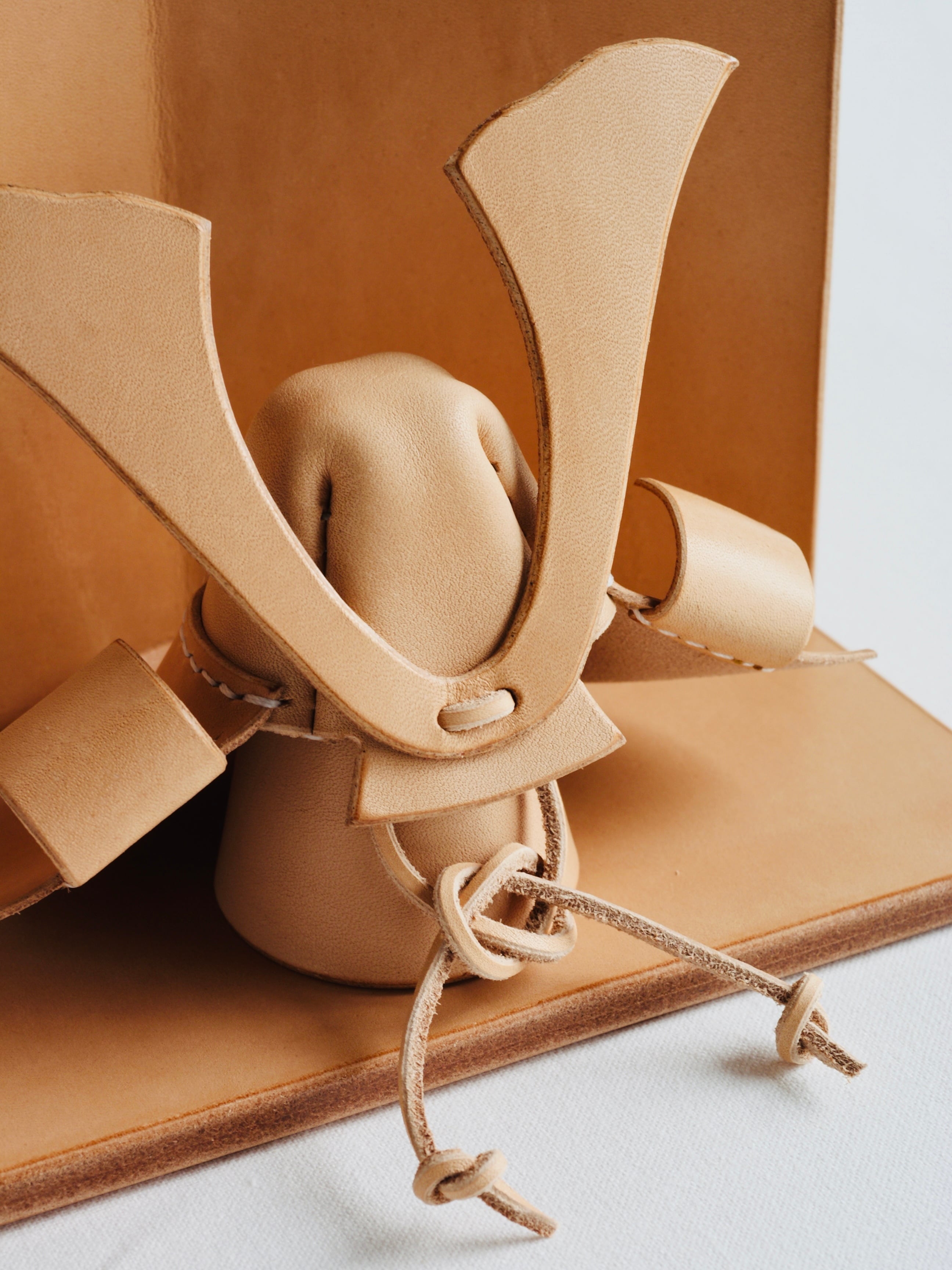 国産ヌメ革の兜。