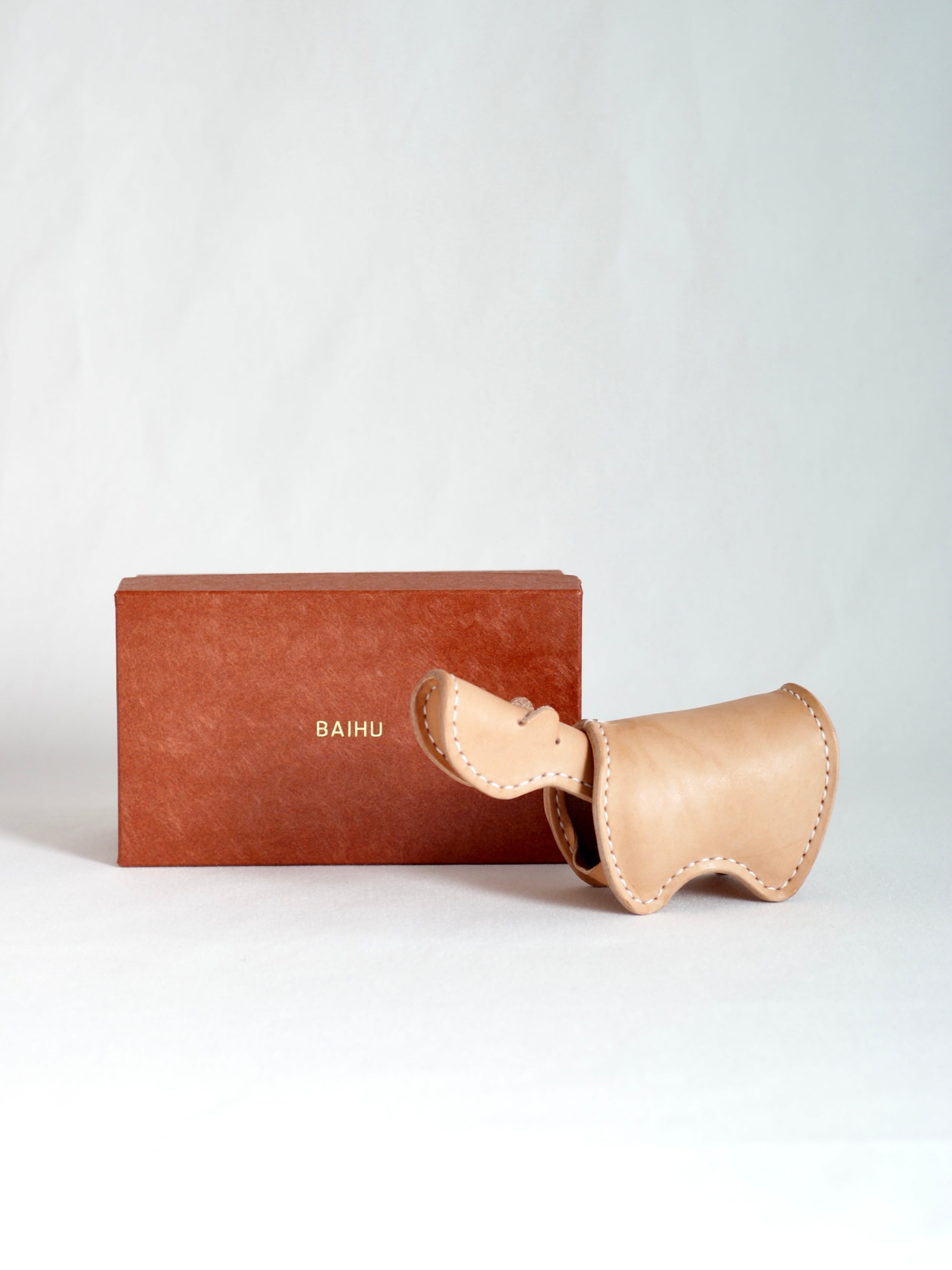 会津の郷土玩具「赤べこ」を革で表現しました。